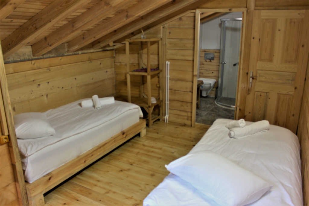 Yeşilköy Dağ Evi odamızda iki çift kişilik (Double) yatak ve iki adet tek yatak (single) mevcuttur. Toplamda 6 kişiye kadar konaklama yapılabilen dağ evimiz 3 oda ve 3 banyodan oluşmaktadır.